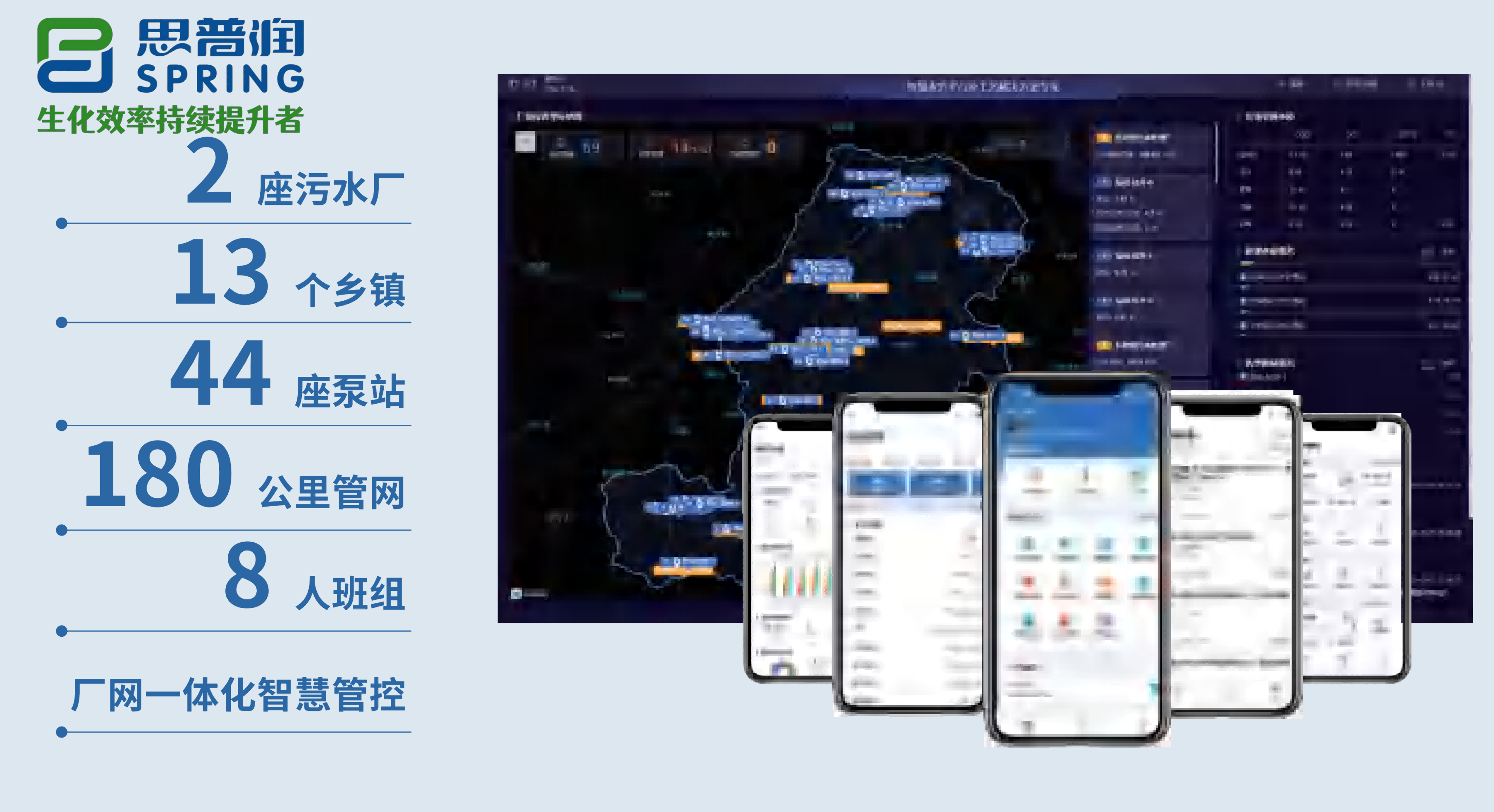 3.不仅应用了我司SPRINTAGE一体化污水处理设备,还应用了我司自主研发的一体化高效分离装置,并搭载智水立方云平台进行智慧管理,解决了设备分散、管理难的问题,保障出水稳定达到一级A 标准。