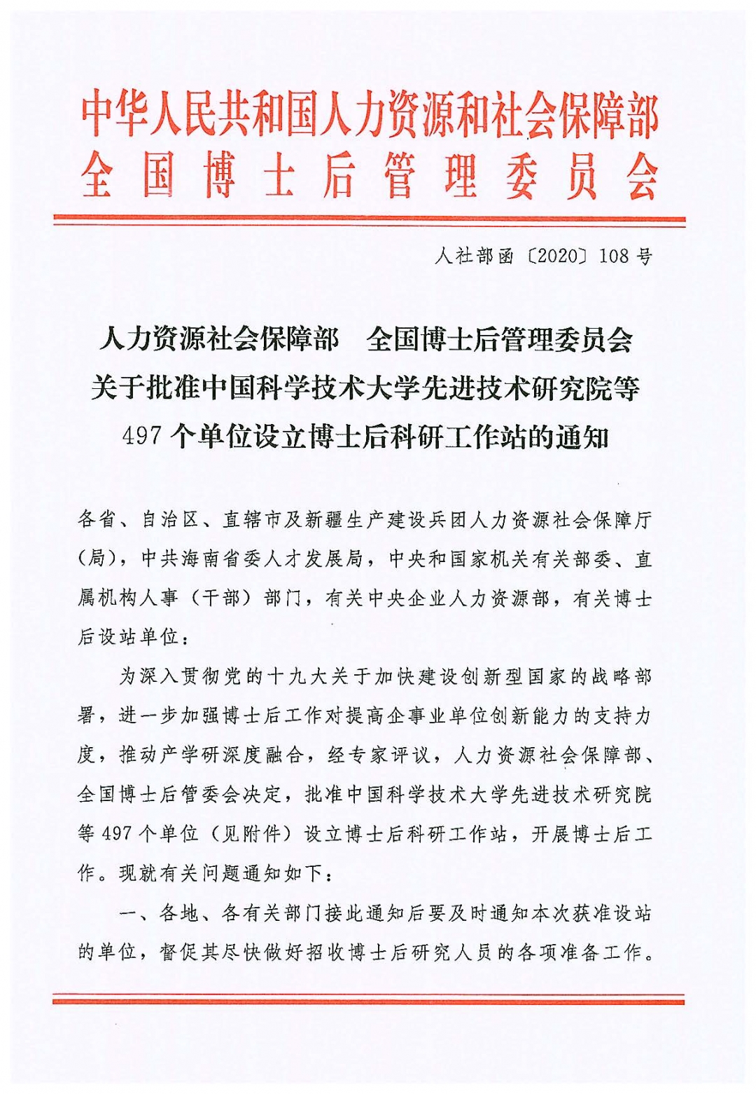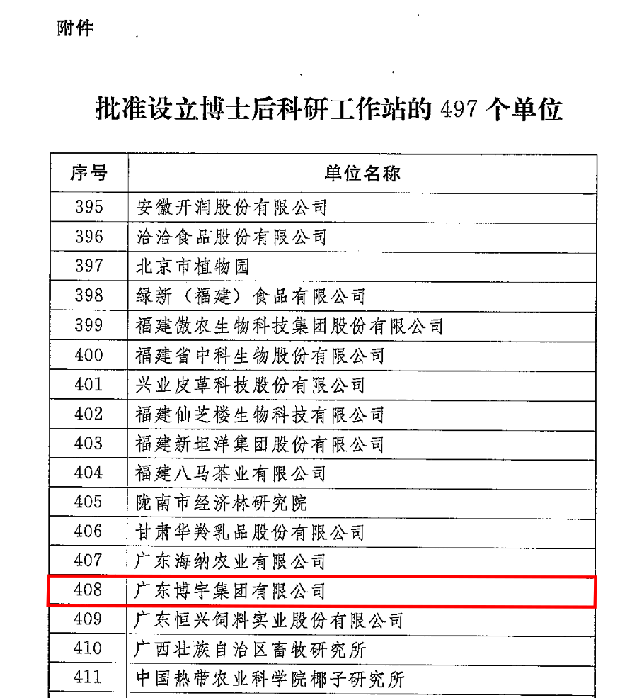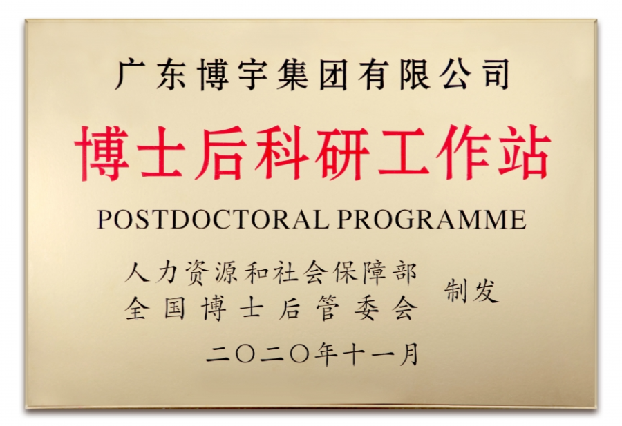 2020年11月27日,根據(jù)人力資源和社會(huì)保障部、全國(guó)博士后管理委員會(huì)《關(guān)于批準(zhǔn)中國(guó)科學(xué)技術(shù)大學(xué)先進(jìn)技術(shù)研究院等497個(gè)單位設(shè)立博士后科研工作站的通知》(人社部函〔2020〕108號(hào)),廣東博宇集團(tuán)有限公司獲批設(shè)立博士后科研工作站。