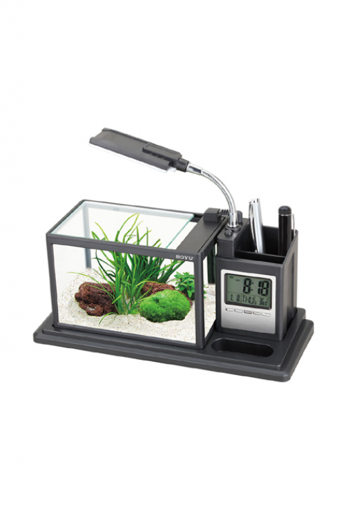 低噪聲潛水泵, 內置底部過濾,清潔水質污物及培養(yǎng)有益細菌(硝化細菌),LED臺燈,電子萬年歷,筆筒為一體的多功能筆筒;