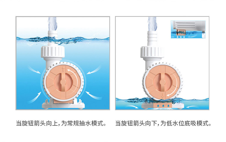 內置低水位吸水切換裝置,一機多用,排污更徹底。